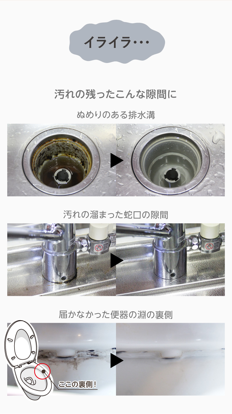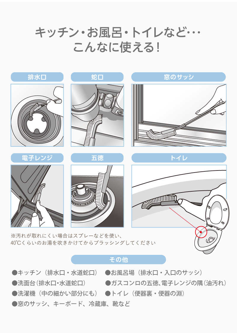細かいところ(今まで掃除が出来なかった場所・気が付かなかった場所・敬遠してきた場所)を重点的に掃除できるブラシ