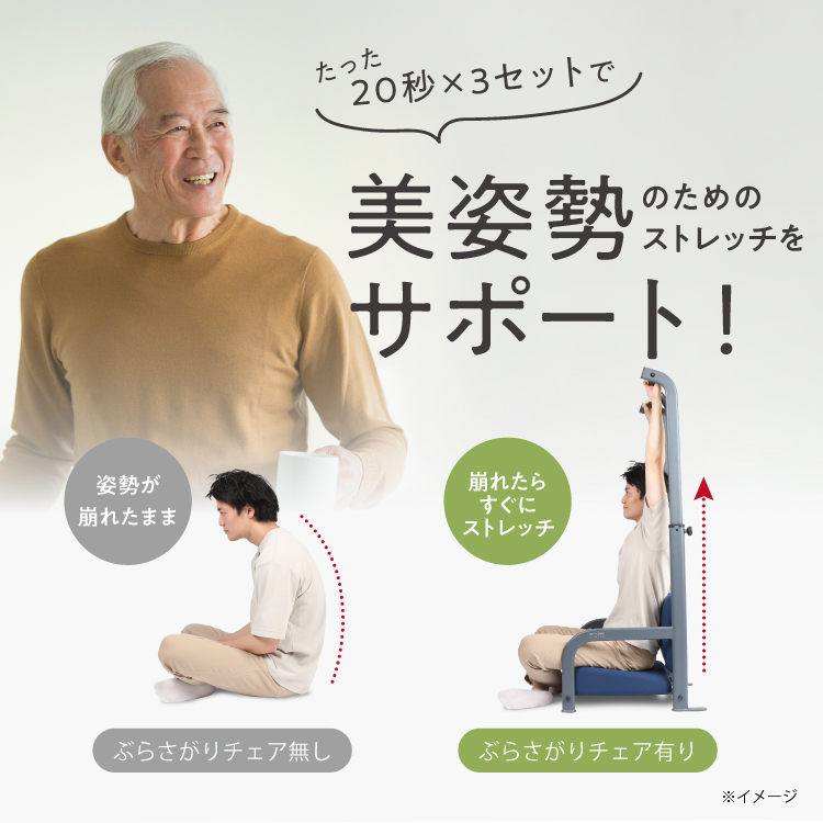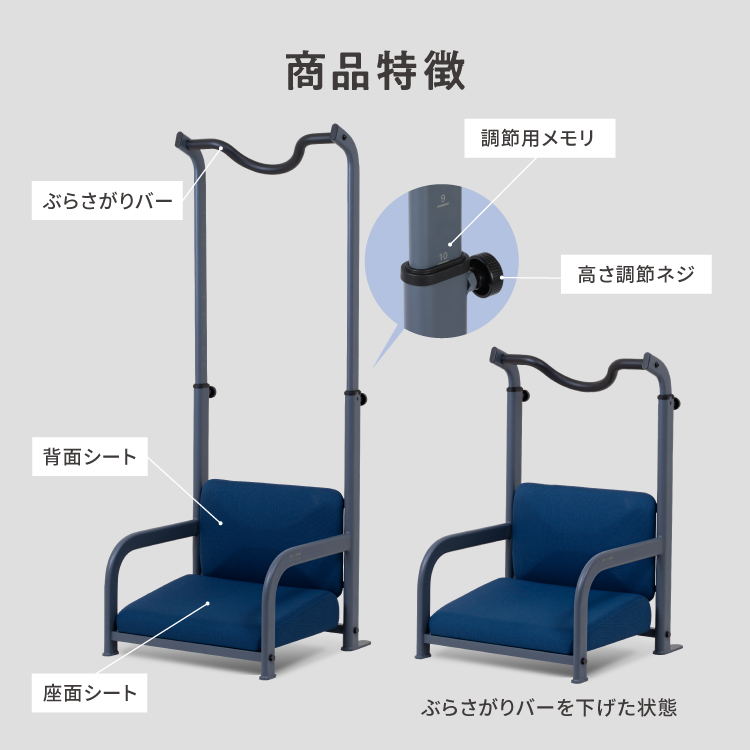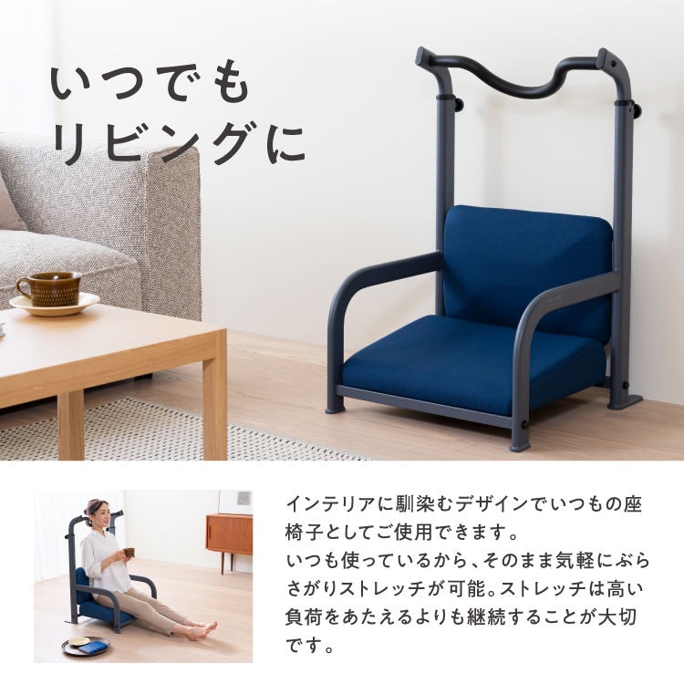 80年代に爆発的ブームとなった「ぶら下がり健康器」が、日常的に使える「座椅子」と組み合わさって再誕生。