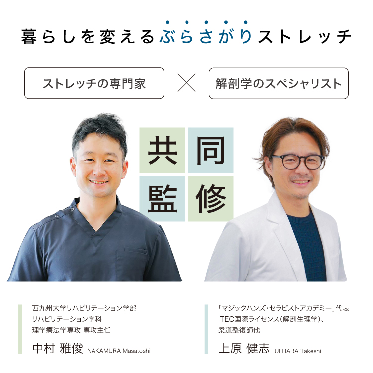「ストレッチ論文数、世界1位」の中村雅俊先生と「解剖学×柔道整復師」の上原健志先生が監修!