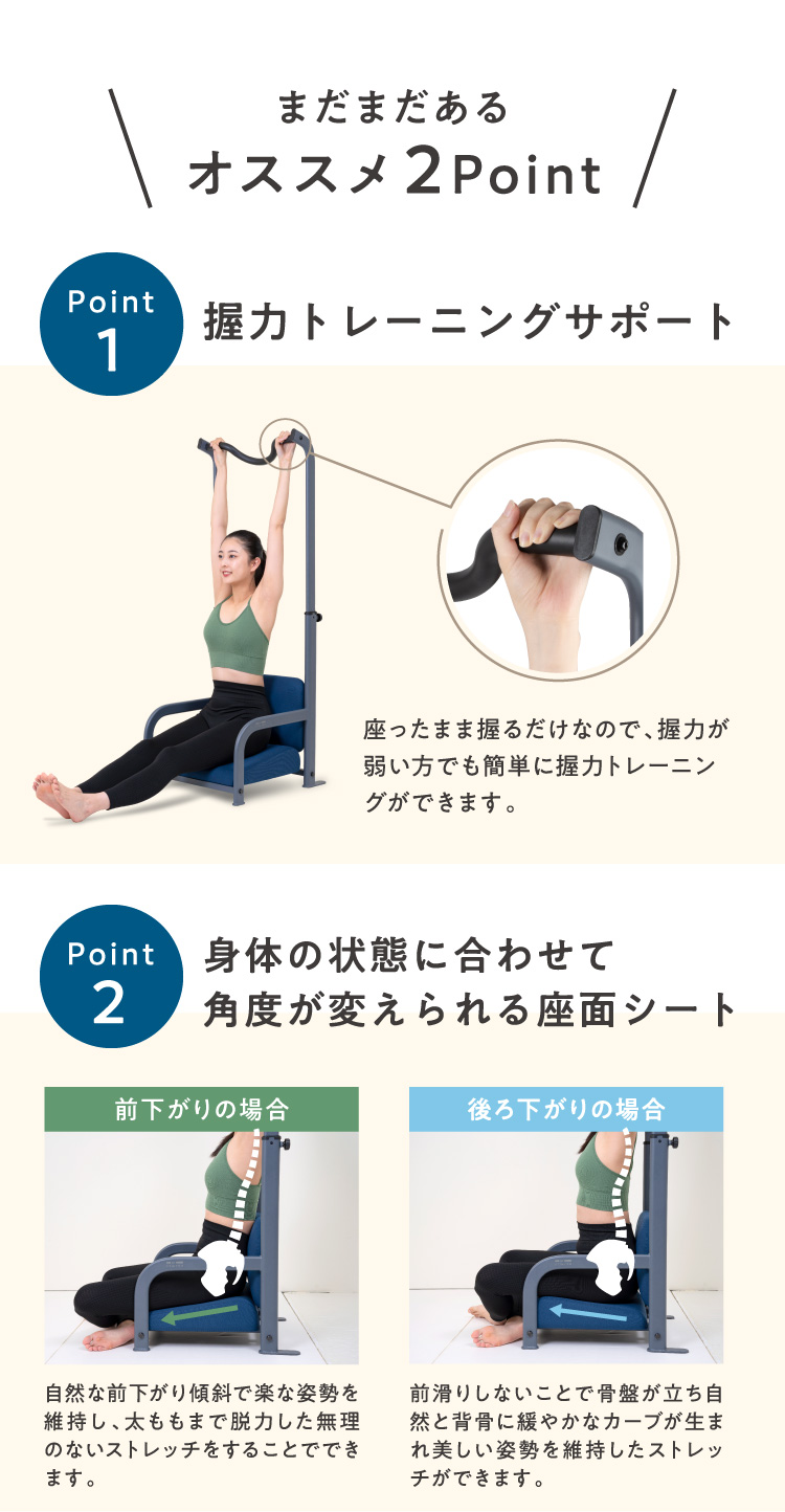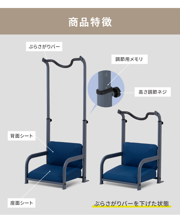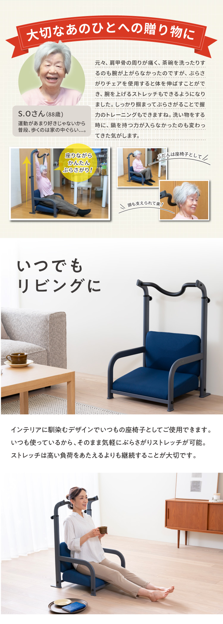 80年代に爆発的ブームとなった「ぶら下がり健康器」が、日常的に使える「座椅子」と組み合わさって再誕生。