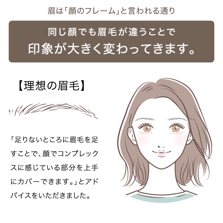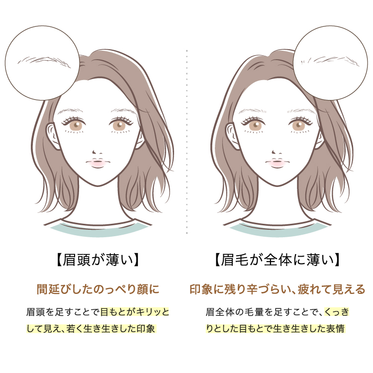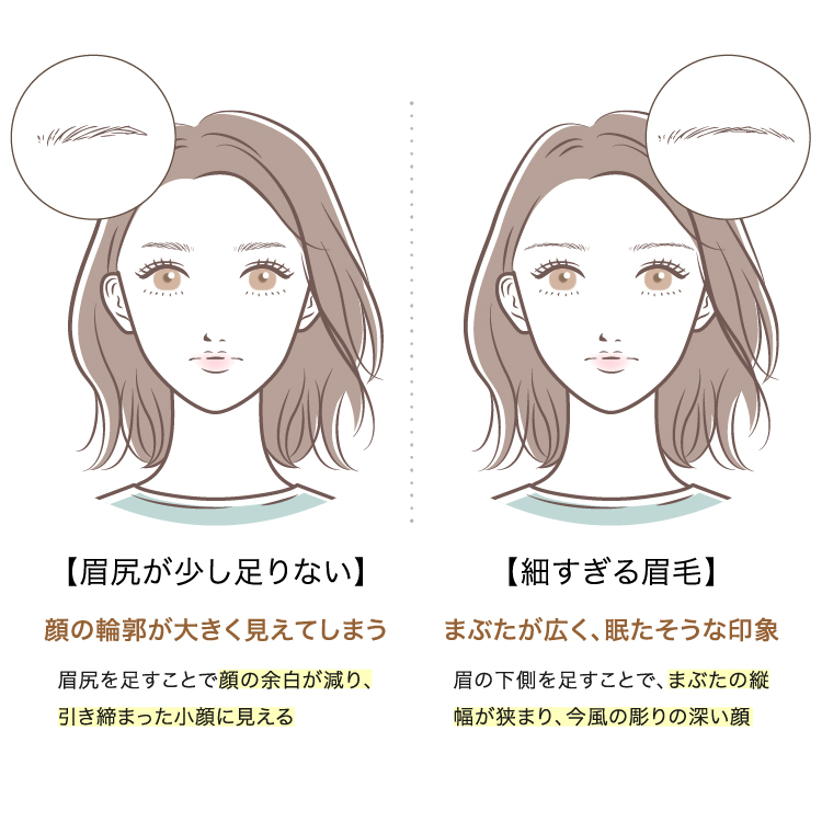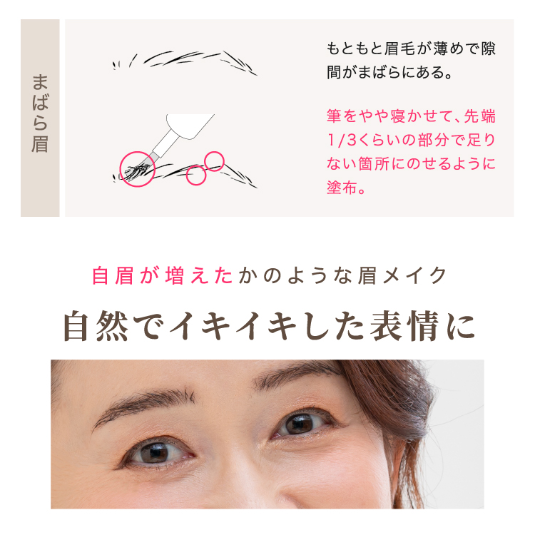 眉毛が生えていない場所に付け足すようにペンなどで書いても、どうしてものっぺり老け印象になりがち。
