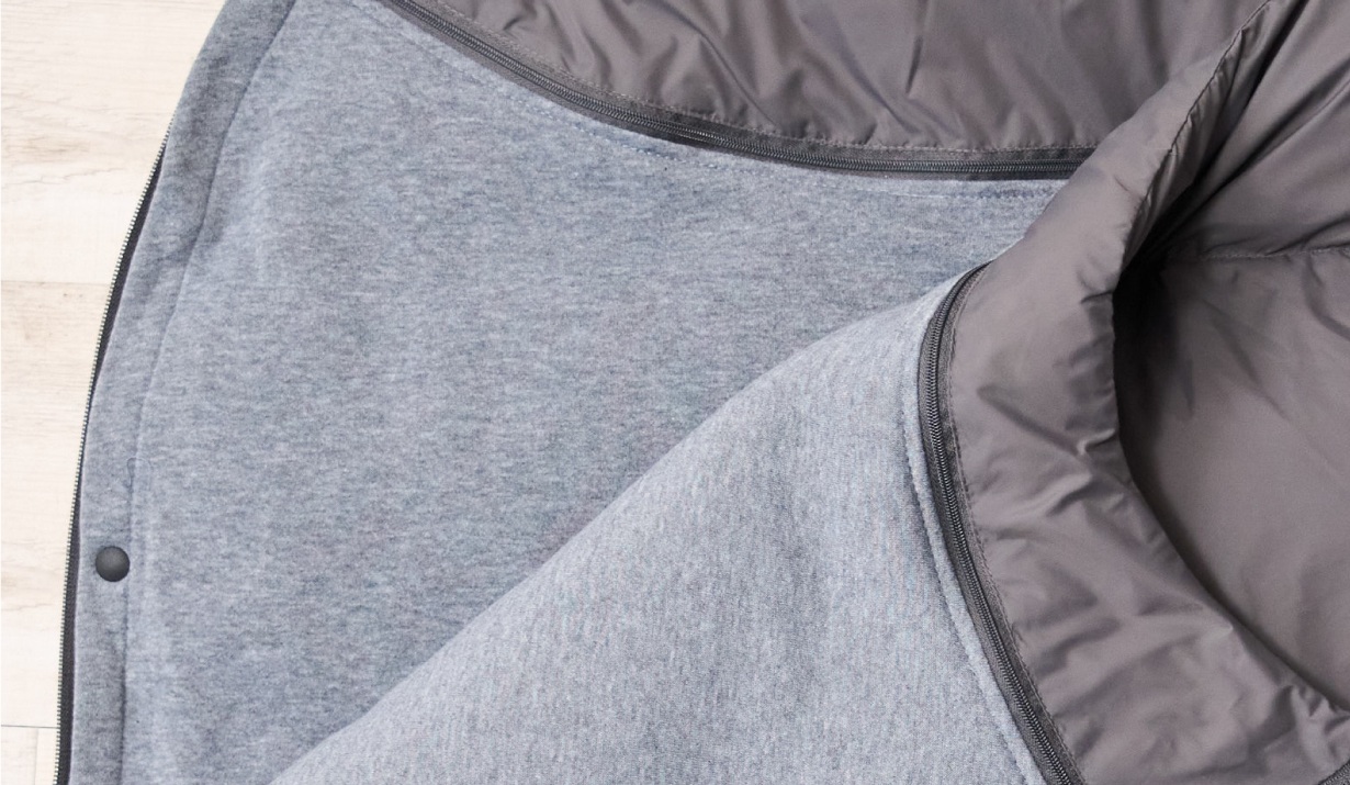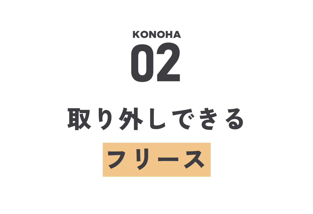 内側にはフリースつきで、そのまま使用するよりももっと暖かく、やさしい肌当たりで使用できます。フリースは取り外しできるので、気温に合わせて保温力を調節することができます。