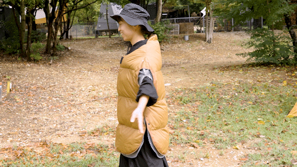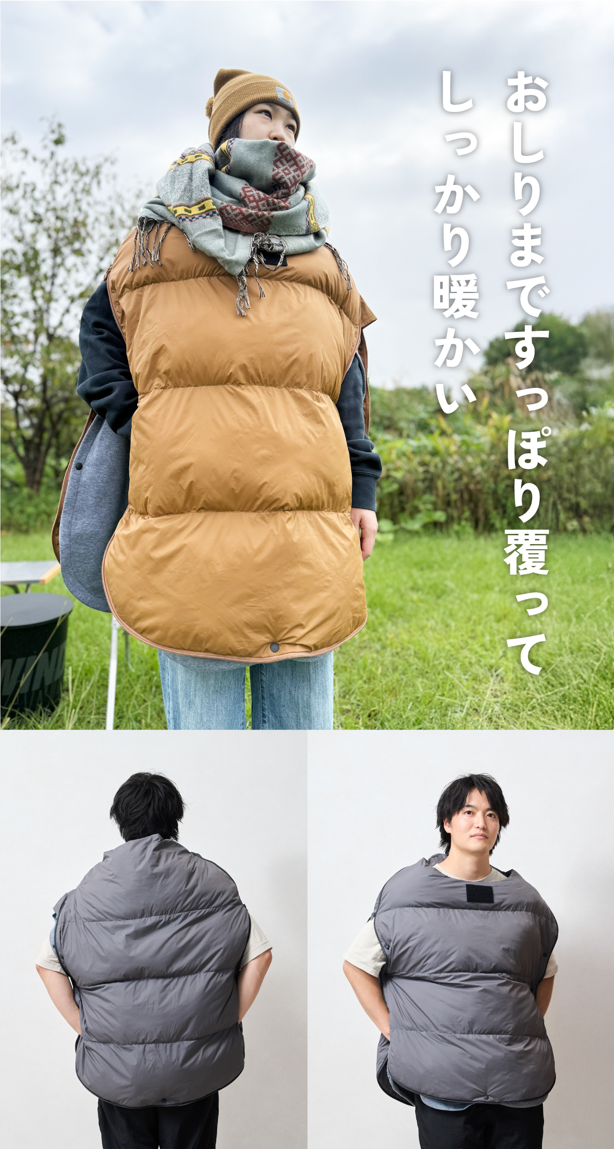 長めの丈感でおしりまでしっかり防寒。フリースをつけたり外したりすることで温度調節もできます。