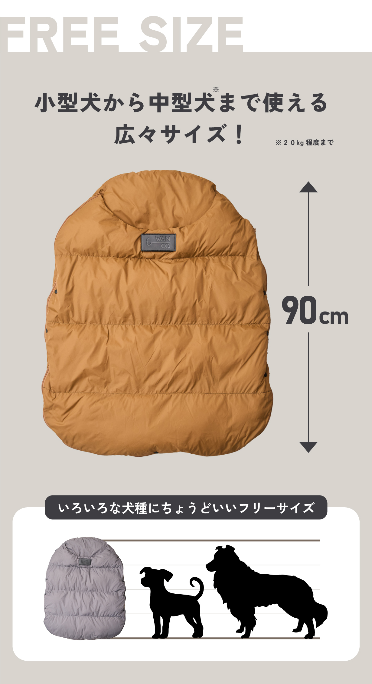 上から被れば飼い主も防寒ポンチョとして使用でき、愛犬が寝床を使わない間も役立ちます。